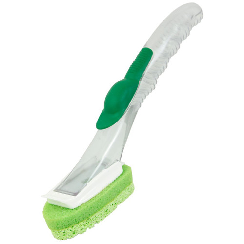 Fill it with your favorite dish soap! The Libman® Gentle Touch Foaming Dish Wand features a strong and durable design and is specifically shaped to fit into corners. The cap-free design eliminates leaks and is contoured to give you a firm grip!